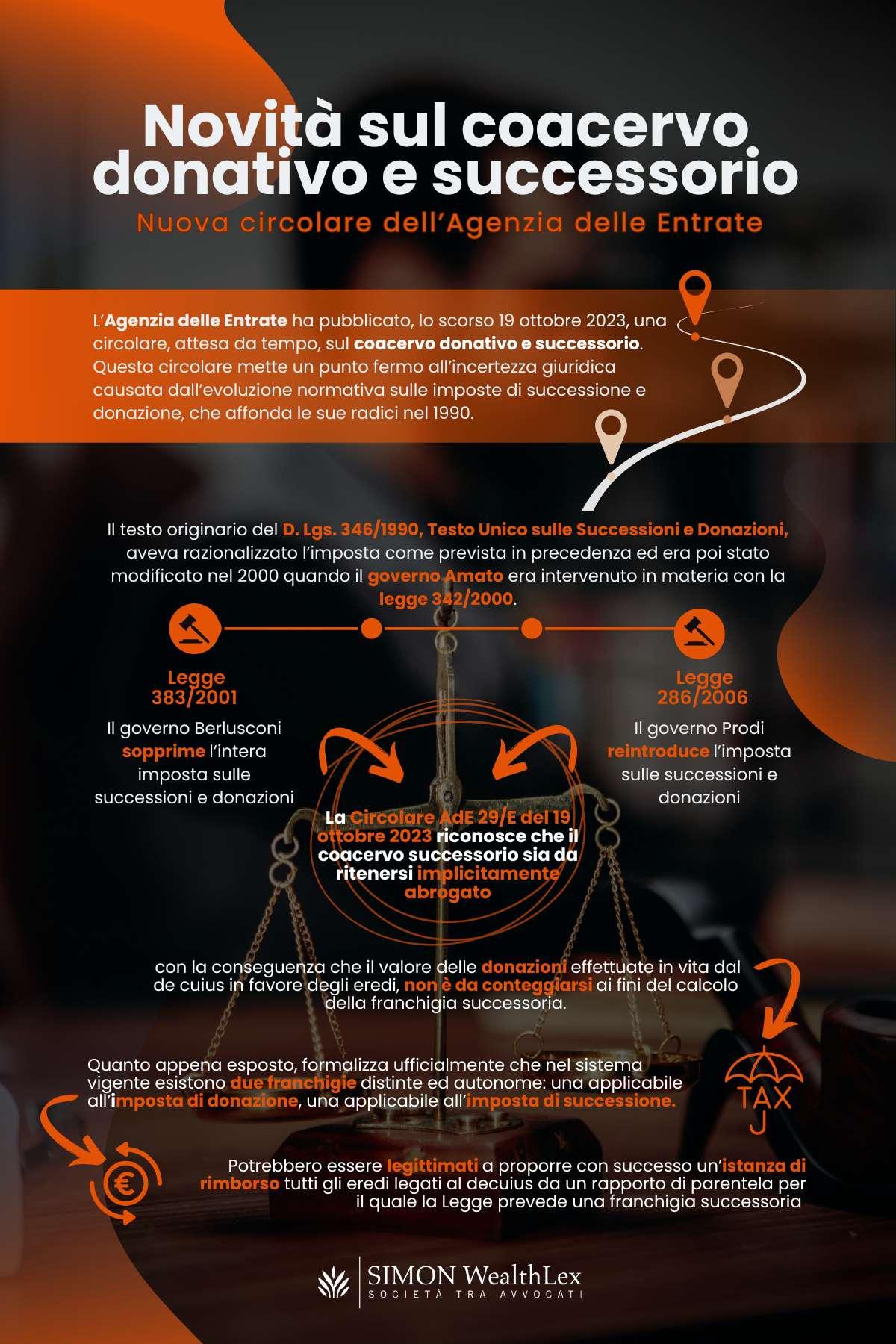 L’Agenzia delle Entrate ha pubblicato, lo scorso 19 ottobre, una circolare, attesa da tempo, sul coacervo donativo e successorio. Questa circolare mette un punto fermo all’incertezza giuridica causata dall’evoluzione normativa sulle imposte di successione e donazione, che affonda le sue radici nel 1990.